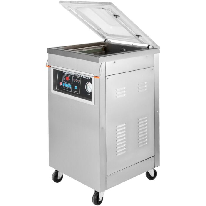 това автоматична машина за вакуумно опаковане ДОРc Приема 800W вакуумна помпа, разполага с първокласни електрически компоненти, има отличен уплътняващ ефект с висока скорост на опаковане, е ефективен и ефикасен. Оборудван с вентилация, която помага за разсейването на въздуха и по-лесното разпределение на топлината, процесът на запечатване е безопасен за бърза работа.