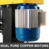 Utstyrt med dobbel kobbermotor, kombinerer strøm og lavt forbruk (350W), slik at man kan jobbe i automatisk modus for raske produksjoner eller manuell modus med bryterkontroll for større presisjon.