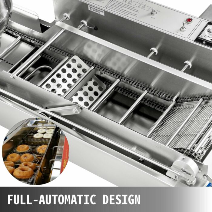 Dette profesjonell smultringmaskin Den er designet for masseproduksjon, ideell for fabrikker, bakerier eller store arrangementer. Med kapasitet til å produsere opp til 1100 smultringer i timen, denne maskinen er effektiv og allsidig, slik at du kan lage smultringer tre forskjellige størrelser. Utskiftbare former tilbyr alternativer for mini donuts, middels smultringer og store smultringer, som oppfyller ulike produksjonskrav.