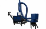 Una vez triturado, el producto pasa por un ciclón separador que cumple varias funciones esenciales: evita la dispersión del material molido en el ambiente de trabajo, minimiza las pérdidas de materia prima y reduce la exposición del operario a partículas en suspensión. La fracción recuperada se descarga automáticamente en la tolva de la mezcladora, eliminando tiempos muertos entre operaciones.