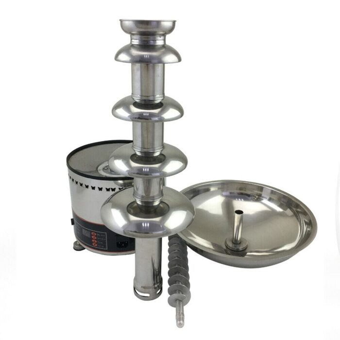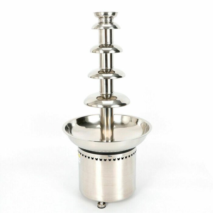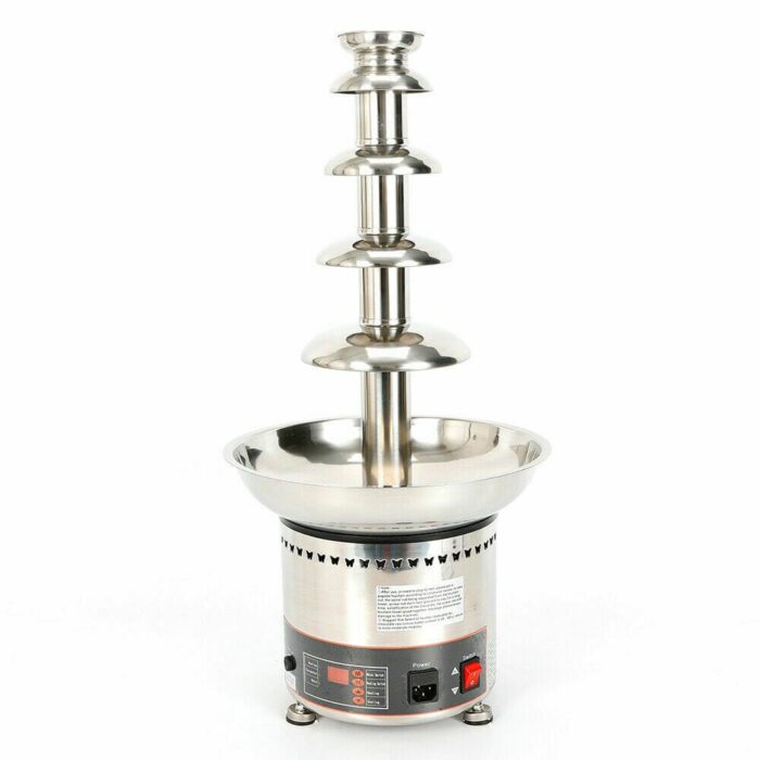 Изработена от хранителна неръждаема стомана 304, шоколадов фонтан ДОРCFCH5 Той е напълно затворен, за да се избегнат проблеми с течове. Неговият безшумен и ефективен мотор го прави подходящ за банкети, сватби, бюфети, събития, партита и др.