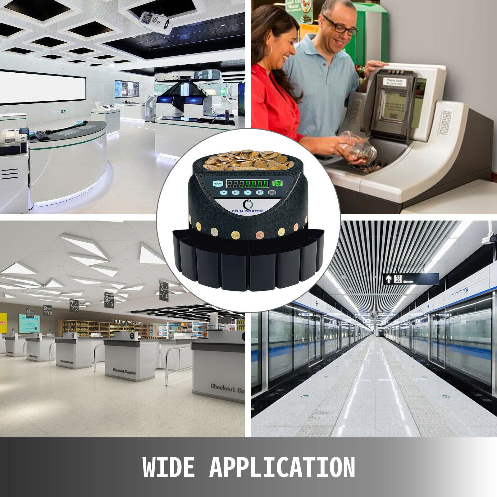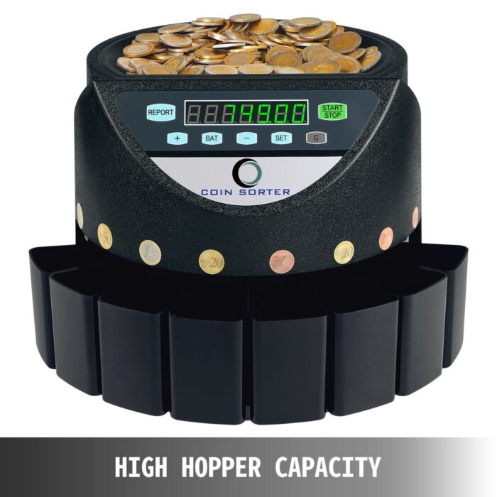 El clasificador de monedas ARC es un contador de monedas electrónico profesional que ahorrará su tiempo al separar y contar cada moneda en diferentes compartimientos, visualizando en la pantalla digital el recuento total y la suma única de cada valor.