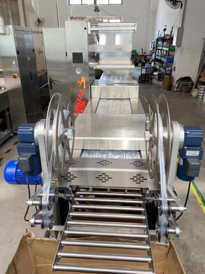 La maquina envasadora al vacío industrial lineal modelo 420-T, una máquina versátil y eficiente Con un diseño robusto y avanzadas características técnicas, esta envasadora está diseñada para ofrecer un alto rendimiento y resultados de calidad. La envasadora 420-T ofrece una velocidad de producción que varía según el tamaño y el tipo de producto a envasar. En condiciones óptimas, puede alcanzar una impresionante variación entre 2000 y 3000p/h. con un rollo de bolsas de 392mm de envasado y de rollo ascendente de 422mm.