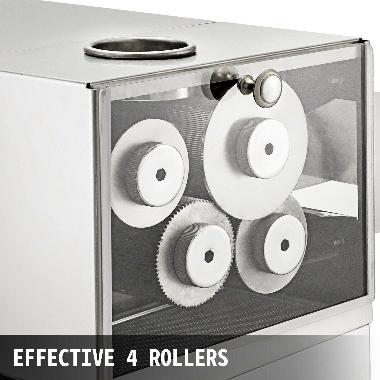 Este extractor de zumo de caña eléctrico ARC está hecho de acero inoxidable alimenticio fuerte y estable. Utiliza 4 rodillos de acero inoxidable totalmente sólidos para separar fácil el jugo y los residuos de la caña de azúcar, esta se exprime dos veces para asegurar una separación más completa y así sacar el máximo provecho de cada caña de azúcar. Es fácil de operar y es especialmente adecuado para hoteles, fruterías, tiendas de bebidas frías, escuelas, etc.