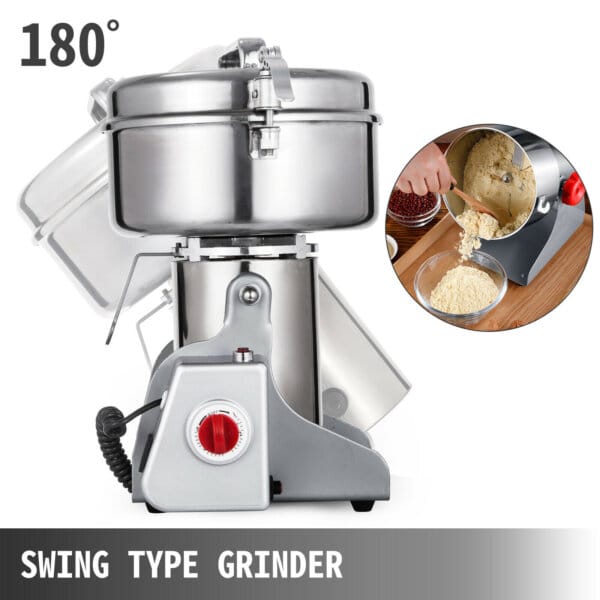 El motor de cobre puro de alta potencia de 1800 vatios le permite moler una gran capacidad de 1000 g al mismo tiempo, mejorando enormemente la eficiencia de la molienda de alimentos. Puede sostener el mango para girar el cuerpo de la cámara para verter el polvo y usar el cepillo para limpiar el polvo residual
