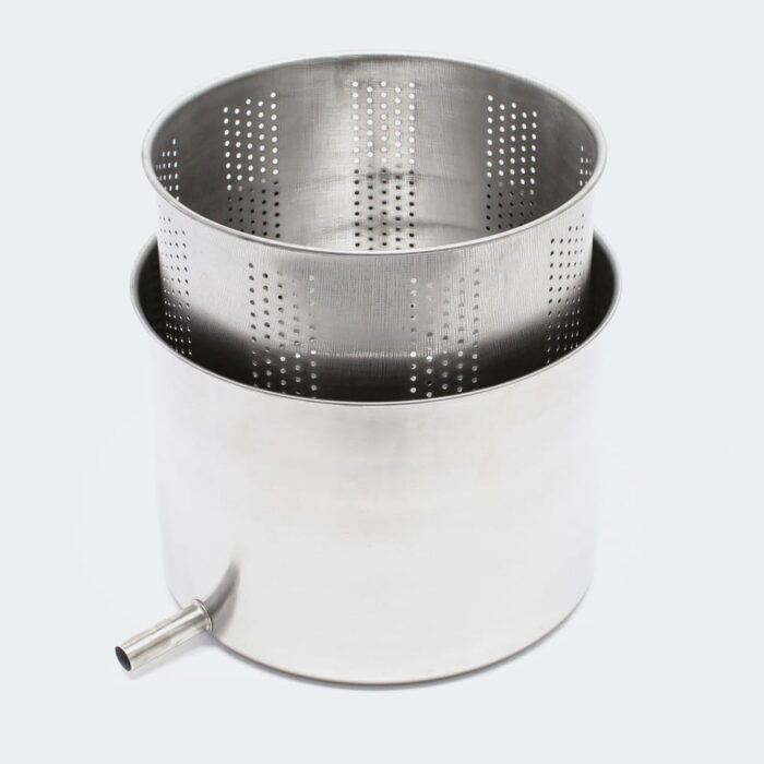La prensadora de vino ARCPEFA5 tiene un eje giratorio con un mecanismo de impresión giratorio. Este tornillo permite presionar fácilmente la fruta, embudo de recogida de acero inox robusto, La cesta de fruta doble está fabricada en acero inoxidable la placa de presión y la bandeja de goteo también están revestidas con un revestimiento apto para alimentos. Todos los accesorios se pueden desmontar y limpiar fácilmente